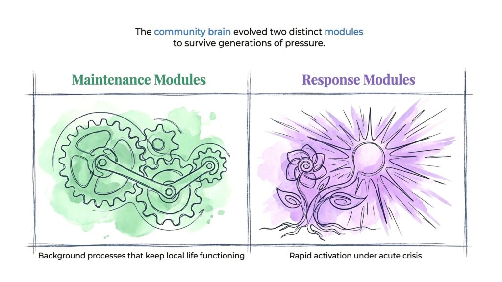 The Borough Brain built what I call “maintenance modules”. They deal in persistence work – the “safe/boring” background processes to keep local life functioning. Quiet, ongoing activity to keep the community ticking over.